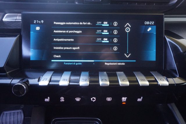 ABS (REF e AFU), 6 Airbags (frontali, laterali, a tendina), Accensione automatica luci di emergenza in caso di forte decelerazione, Active Lane Departure Warning con funzione Road Edge, Active Safety Brake (con distance alert), Adaptive Cruise Control "Stop&Go", Alzacristalli anteriori e posteriori elettrici sequenziali con funzione antipizzicamento, Appoggiagomiti centrale anteriore, Appoggiagomiti centrale posteriore con passaggio sci, Artigli anteriore con decoro inserto cromato, Avviamento motore mani libere (pulsante "Start" per accensione), Blind Corner Assist (sistema di monitoraggio dell'angolo cieco della vettura), Calandra con profili orizzontali cromati ed inserti nero brillante, Cambio automatico a 8 marce, Cerchi in lega 17" Merion, Climatizzatore automatico bi-zona con aeratori posteriori, Cofano attivo per sicurezza pedoni, Cristalli delle portiere "frameless" (senza cornice), Cruise control e limitatore di velocità, Drive Assist Plus Pack, Driver Attention Alert, Extended Traffic Sign Recognition, Fari anteriori alogeni con fari diurni anteriori a LED, Fari posteriori a LED, Fissaggi ISOFIX seggiolino bambini (1 anteriore passeggero, 2 posteriori laterali), Freno di stazionamento elettrico e Hill Assist, High Beam Assist, Indicatore perdita di pressione pneumatici, Interni in tessuto / TEP Imila, Keyless System, Kit di riparazione pneumatici, Lane Position Assist, Palette al volante, Peugeot I-Cockpit con Head-up Digital Display 12,3", Presa 12V (potenza max 120 W) nel pannello anteriore, Profili vetratura nero brillante, Retrovisori in tinta carrozzeria, Retrovisori riscaldabili a regolazione elettrica richiudibili elettricamente con illuminazione a LED Retrovisori posteriori nero brillante, Sedile posteriore frazionabile 2/3 - 1/3 e ribaltabile, Sedili anteriori regolabili in altezza, Sensori di parcheggio anteriori e posteriori, Servosterzo elettrico, Sicurezza bambini meccanica, Speed Limit Detection, Tasche nel retro dei sedili anteriori, Tergicristallo ant. con sistema di pulizia Magic Wash, Time Drive Control, Vetri posteriori e lunotto oscurati, Visiopark (retrocamera 180°), Volante in pelle pieno fiore, Volante regolabile in altezza e profondità.
